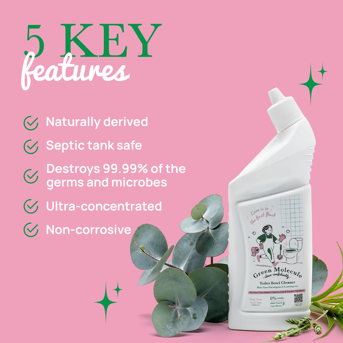 Plant-powered and pH-optimized, our formula is tested to clean and disinfect toilet bowls, tackle tough stains, help prevent mineral buildup, and leave the space feeling clean and fresh.